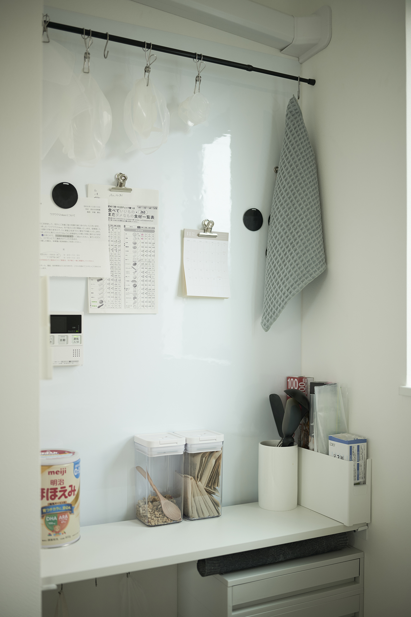 担当したのは女性の設計士。家事の流れや暮らしの細部に寄り添った提案が印象的だったそうです。キッチンの周囲には、日常の雑多さをやさしく包みこむような収納がさりげなく組み込まれています。