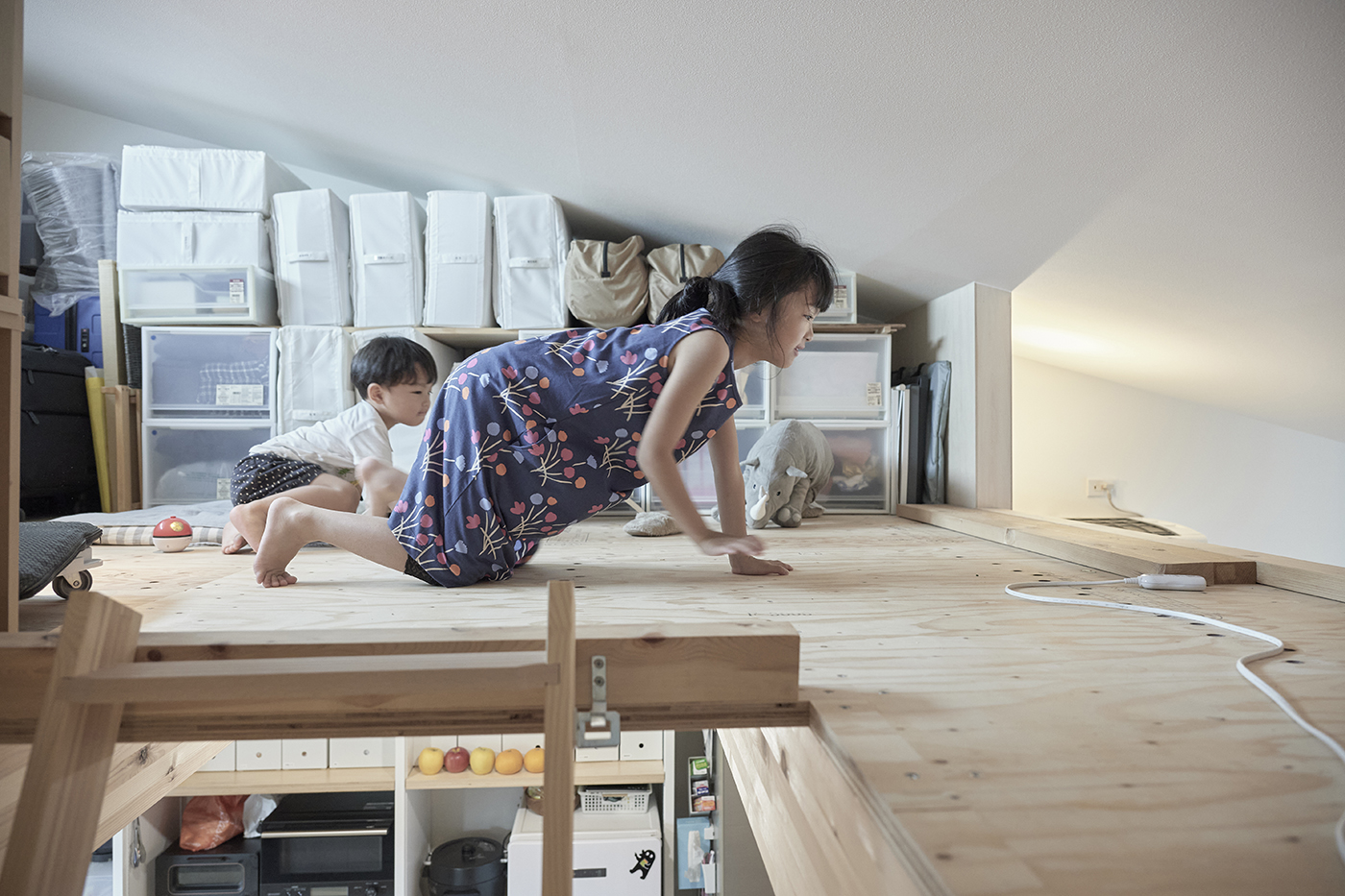 子供たちもこの空間を気に入ってもらえたようで何より。壁の周りでお子にごっこをしたり、ロフトから紙飛行を飛ばしたり。特に大きな窓がお気に入りでベンチの周りでくつろいだり勉強したりしているそう。