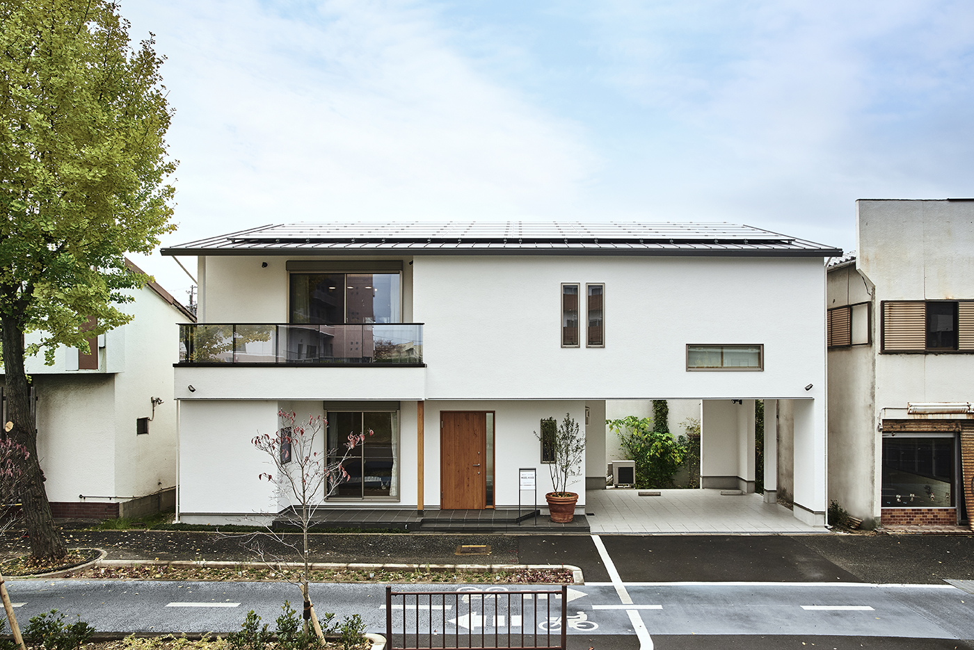もっと木の良さ、自然素材の良さをみんなに知ってもらいたい、という想いから中百舌鳥の国道沿いにこのモデルハウスは計画されました。