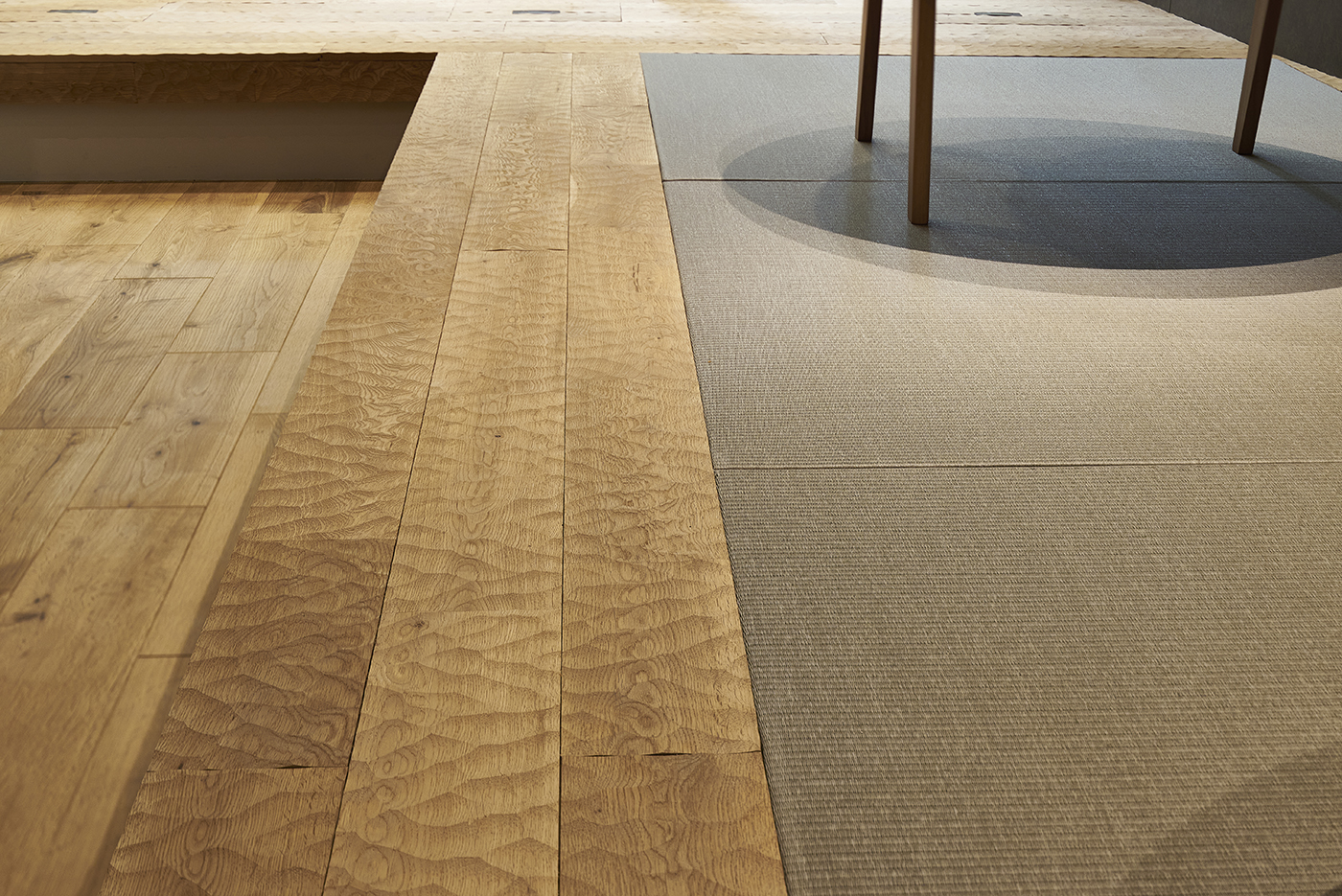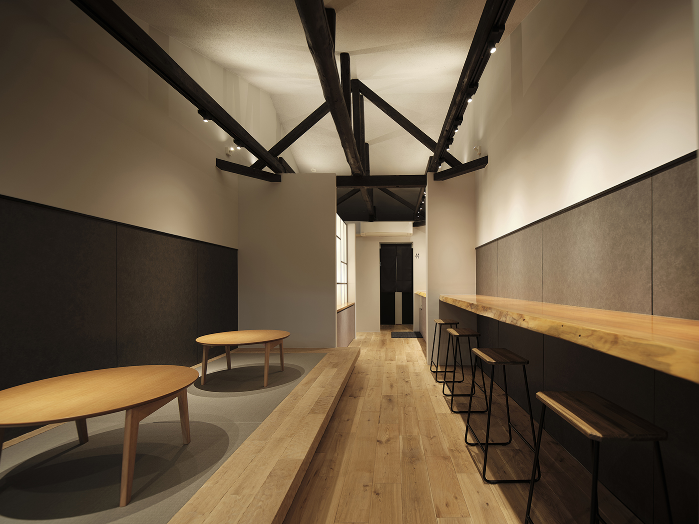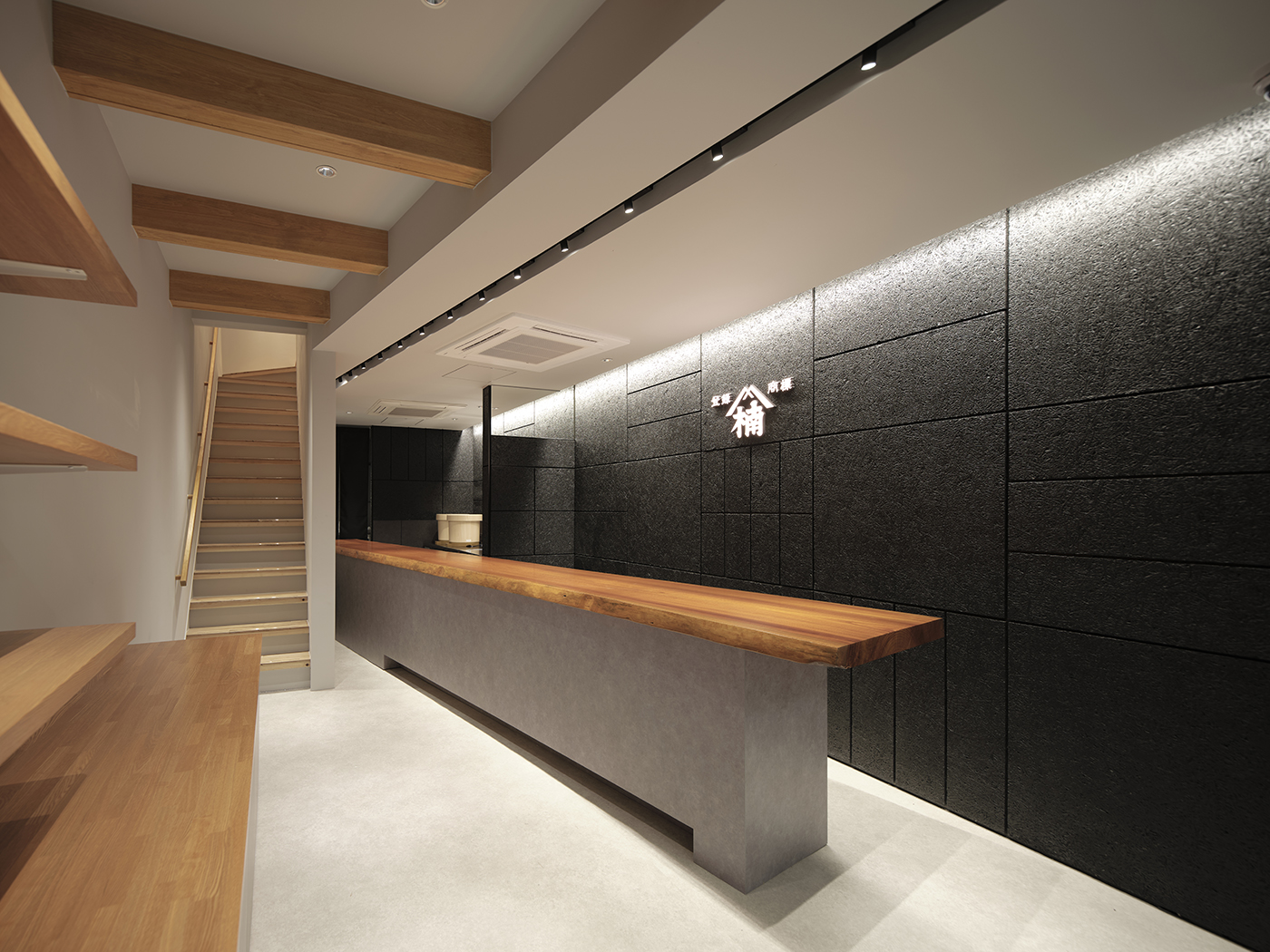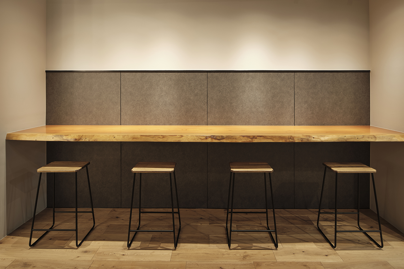 またおむすびを陳列するカウンターは欅の一枚板を贅沢に配置し、本物を味わってもらいたいという想いも込めています。